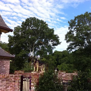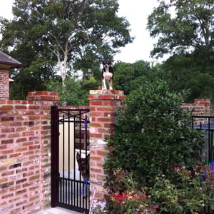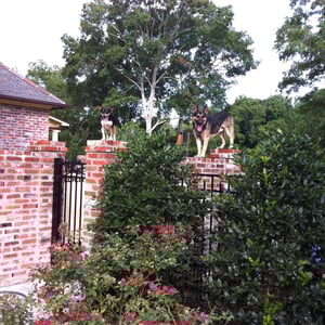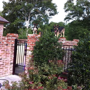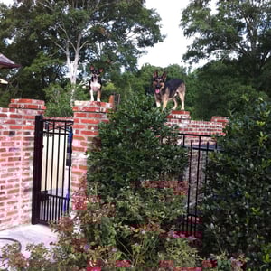 Think a traditional fence will keep all dogs in? Think again. These two escape artist had figured a way out of their 7 ft. brick wall with no problems!!!! Truth is, we install as many